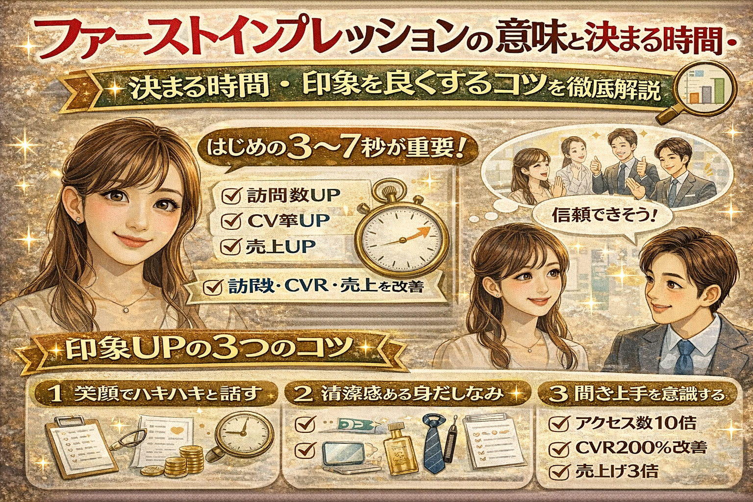 「どうすれば短時間で好印象を残せるのか」「悪い第一印象を挽回するには具体的に何をすれば良いのか」——そんな疑問や不安を解消するために、この記事ではファーストインプレッションの定義から科学的根拠、日本語・英語での違い、ビジネスや恋愛での活用法、失敗からのリカバリーまで、豊富な事例や実証データをもとに徹底解説します。
