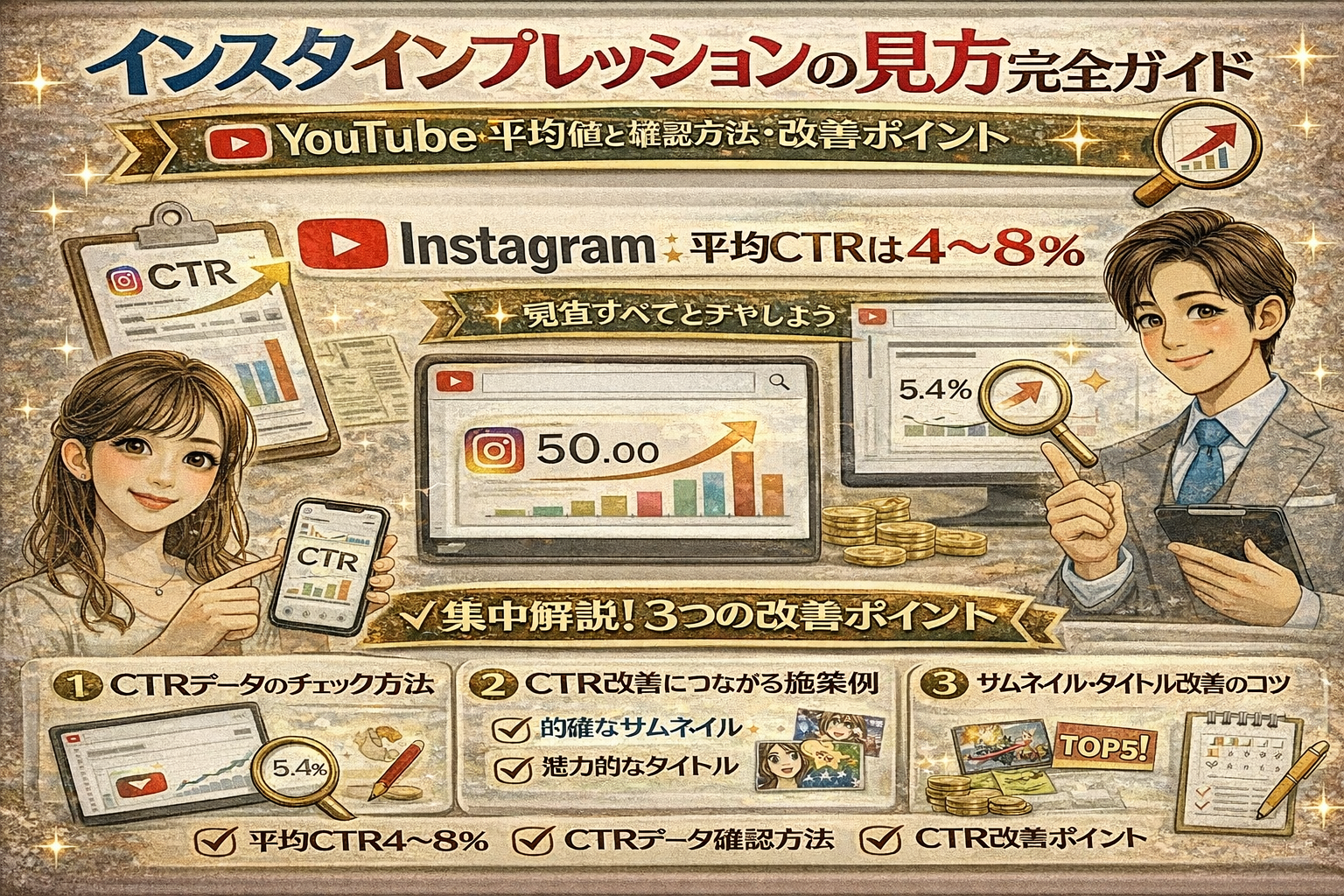 このページでは、具体的な平均値やジャンル別の傾向、YouTube Studioでの正確な確認手順、サムネイル・タイトル改善のリアルな成功例まで、専門家視点で徹底解説します。最後まで読むことで、あなたのチャンネルが「クリックされる動画」に変わるヒントを手に入れることができるでしょう。