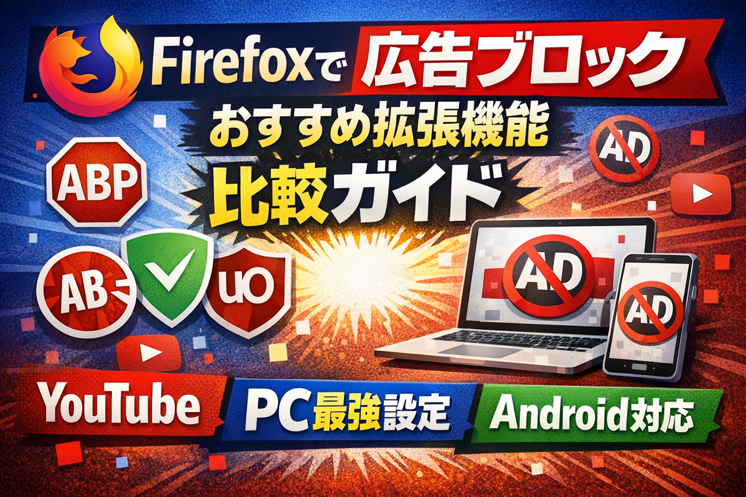 Firefoxで広告ブロック環境を最適化するための流れをまとめました。uBlock OriginやAdGuardを中心とした拡張機能の活用がポイントです。