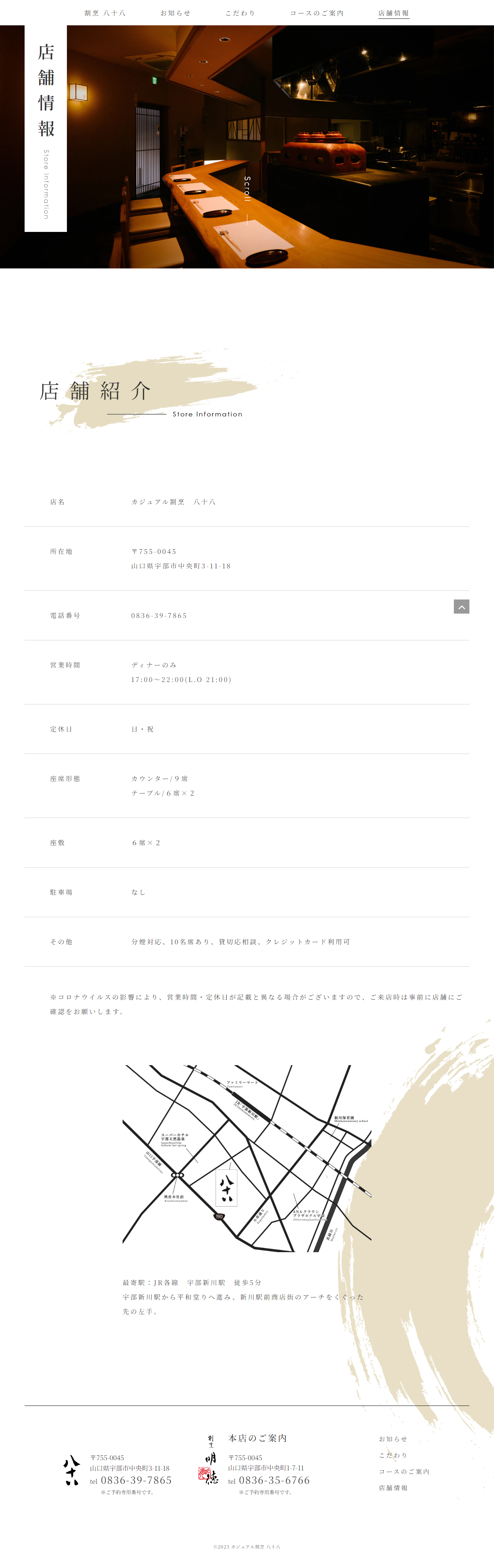 季節の食材を取り入れた逸品料理を得意とし、訪れるたびに新しい料理に出合えると山口県宇部市で評判の「カジュアル割烹 八十八」。
